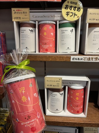 こんにちは、松村店です!今日はクリスマスイブですが、店内はもうお正月に向けて模様替え中お年賀にぴったりな迎春缶(季節限定カフェショコラブレン···